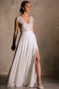 Seductive and feminine silk skirt with a leg slit, perfect for a boho-style wedding.