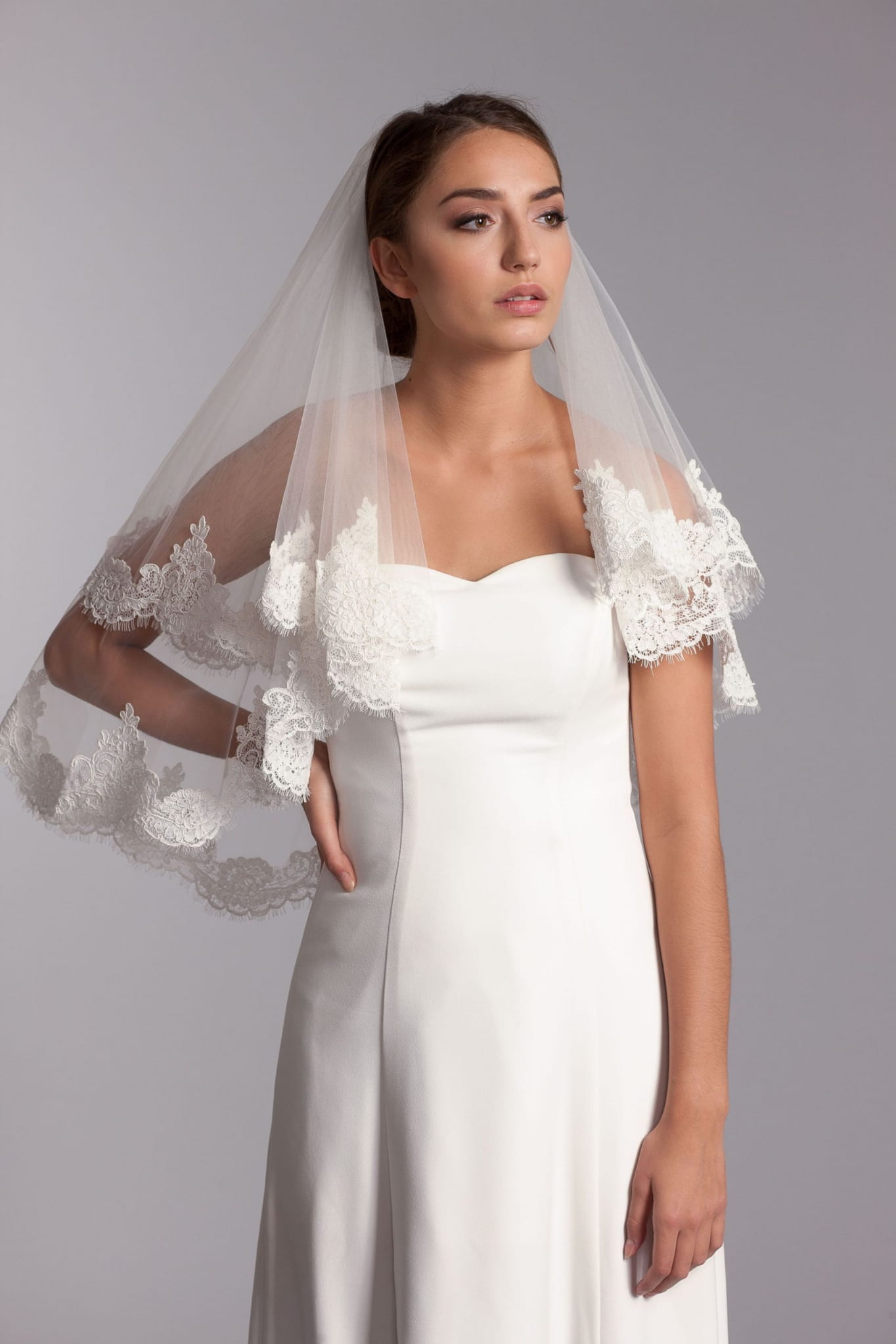 Elevate your bridal elegance with our two-tier veil, delicately edged in corded lace.