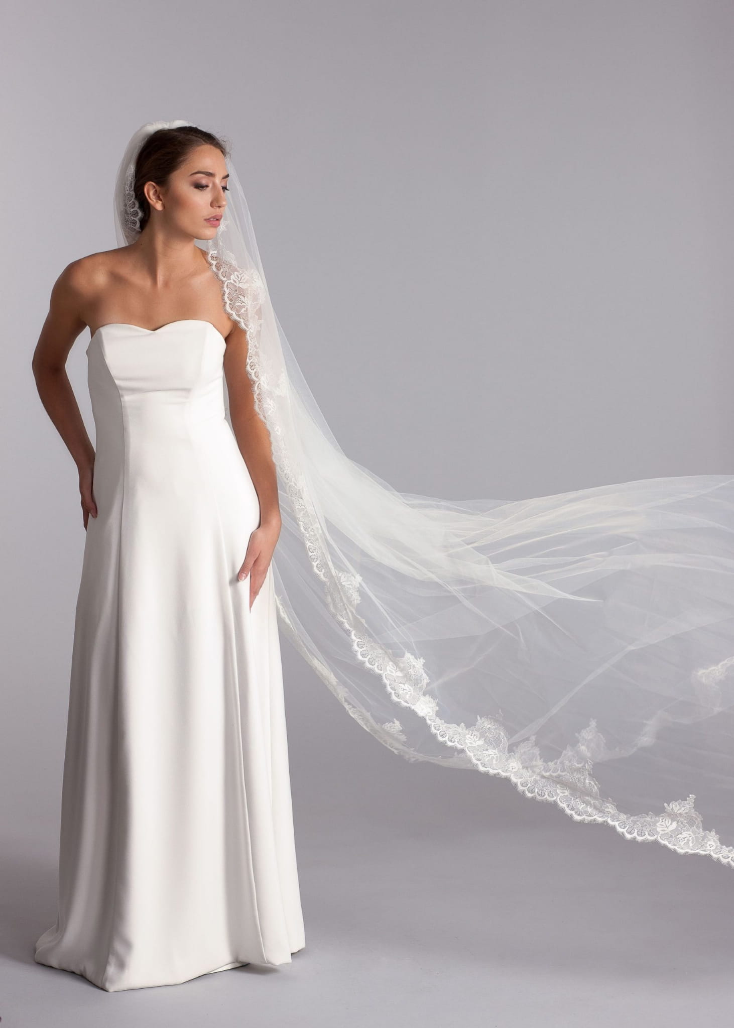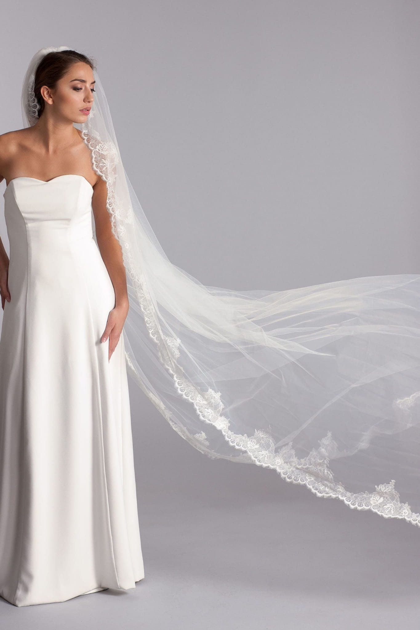 - Cathedral veil with lace