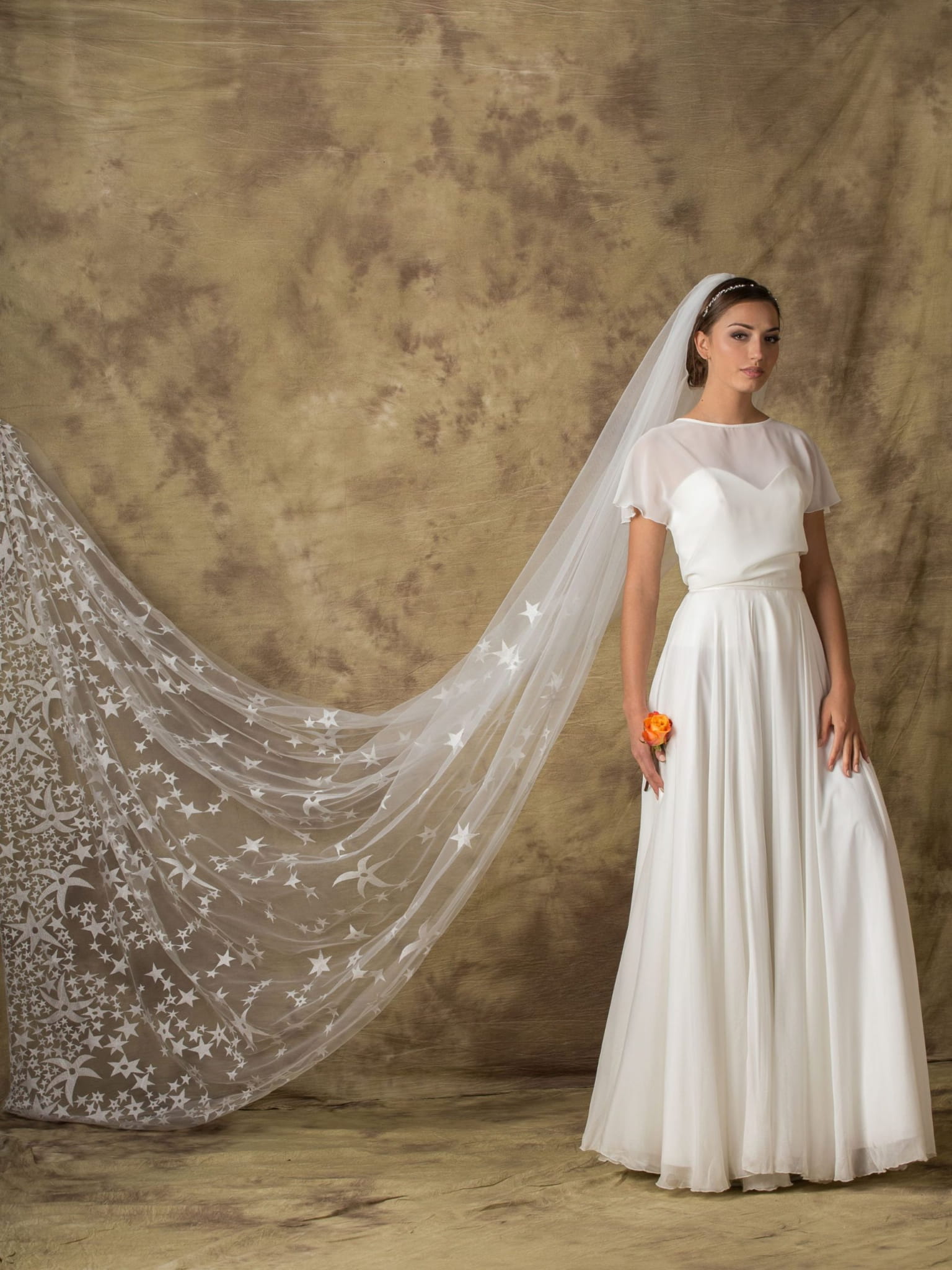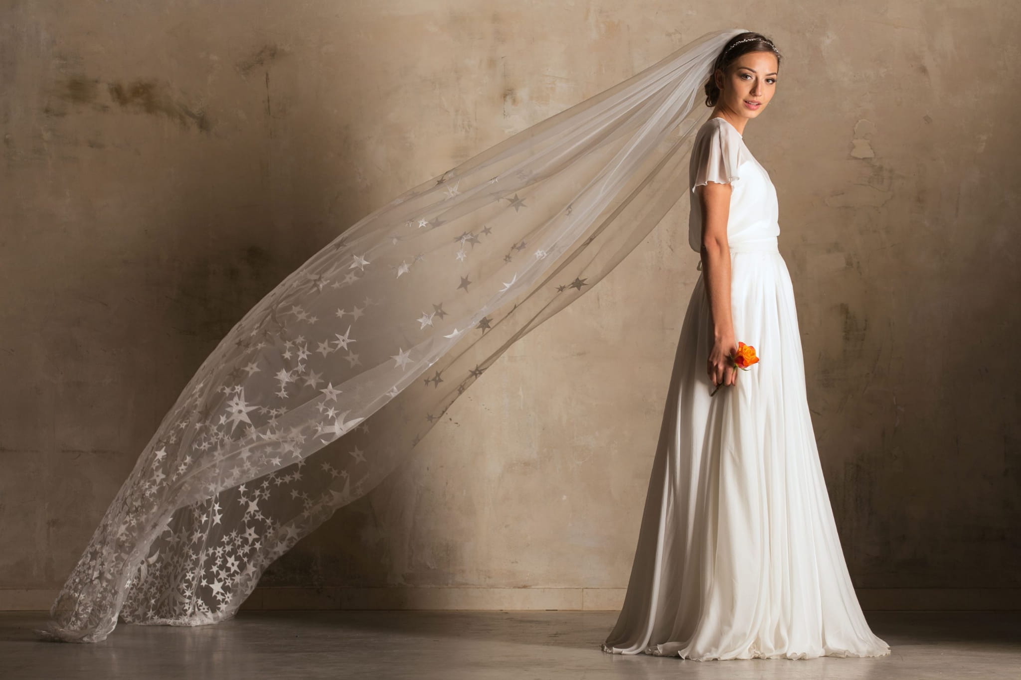 As you descend, the veil becomes a celestial cascade, with an increasing number of stars, creating a mesmerizing and ethereal look for your special day.