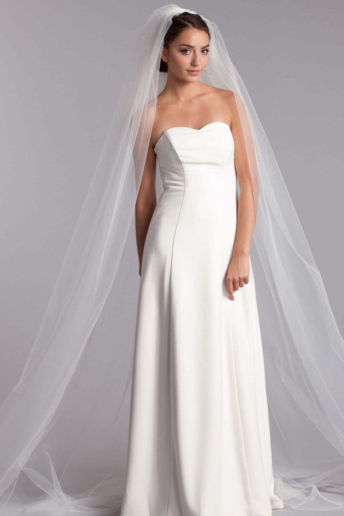 A long, smooth veil, the epitome of timeless elegance.