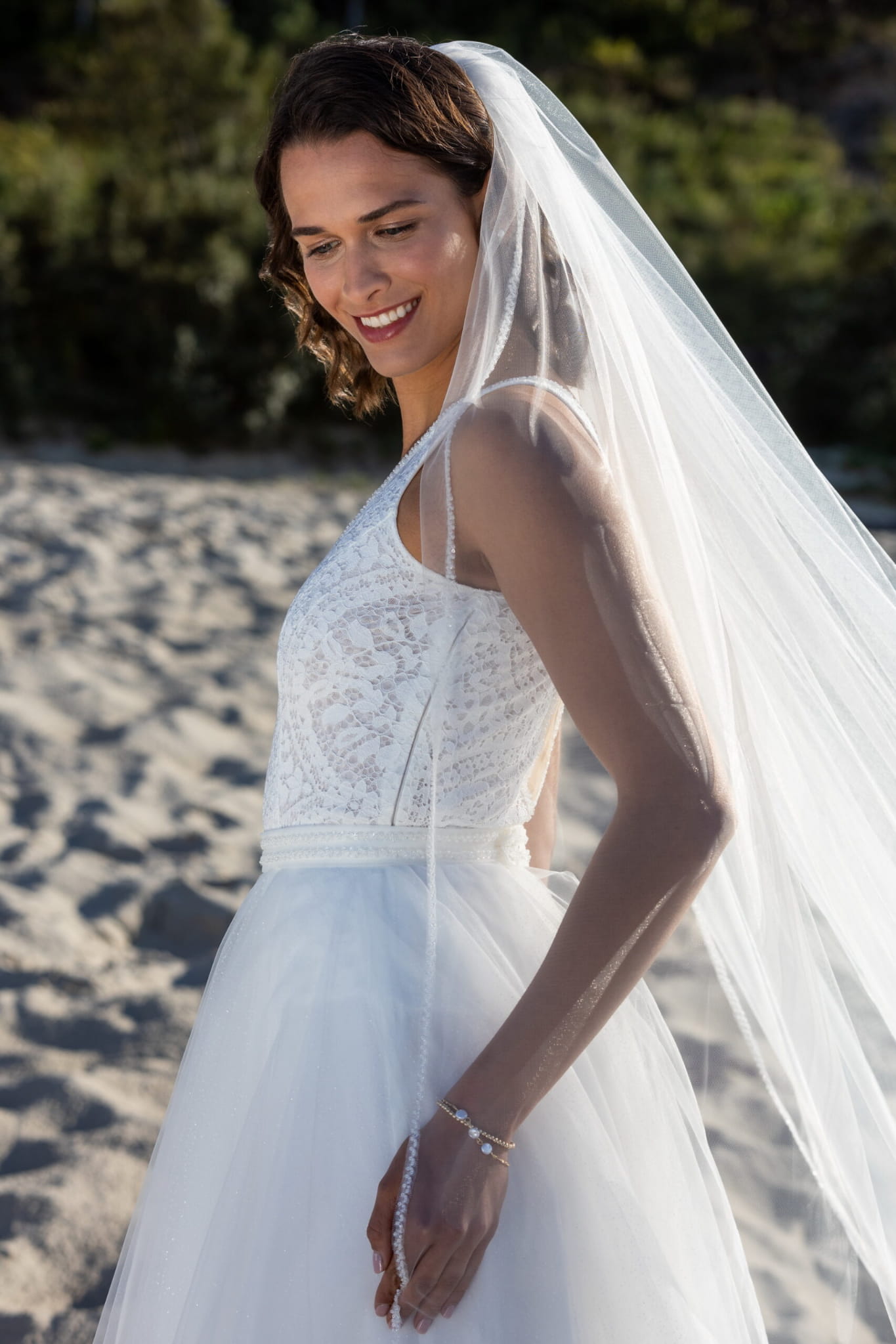 Featuring a single line of delicate crystals all around, this veil adds a touch of elegance and radiance, making you shine on your special day.