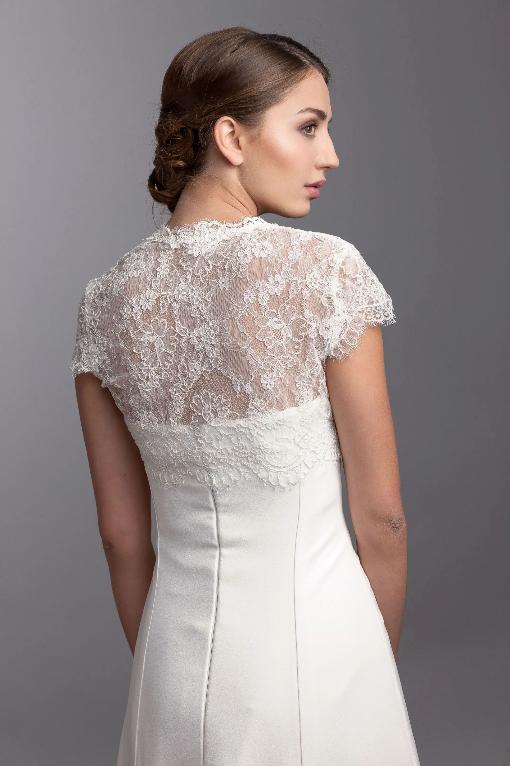 Explore timeless elegance with our classic butterfly-shaped bolero crafted from Chantilly lace.