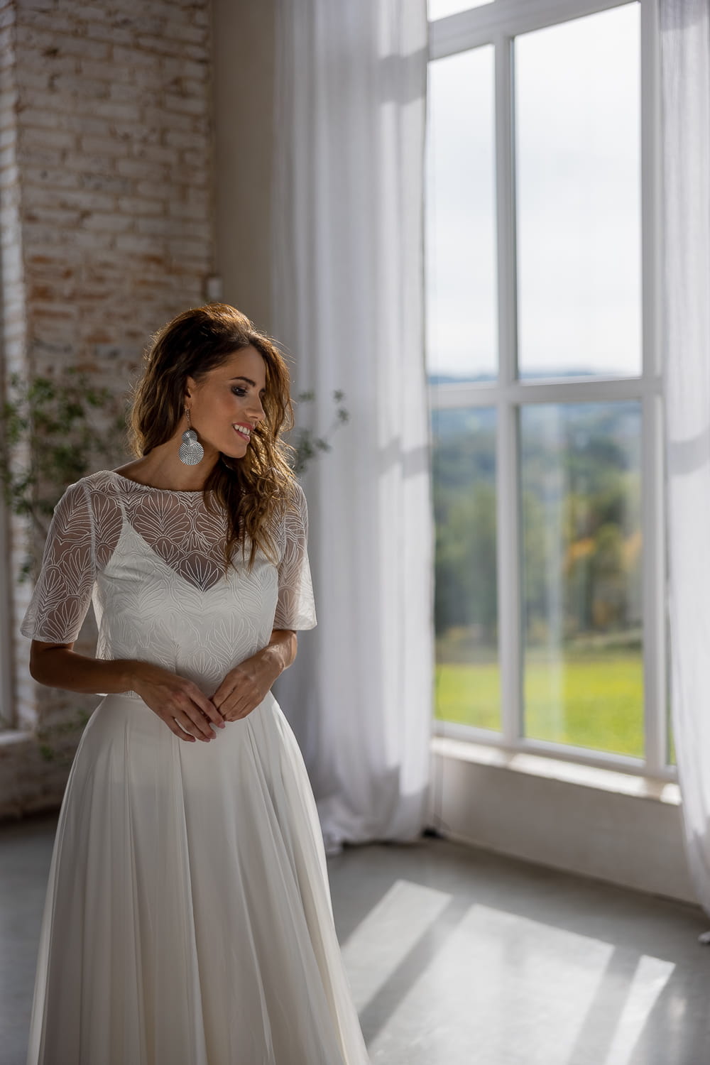 Introducing our bridal bolero TERE crafted from trendy geometrical lace.
