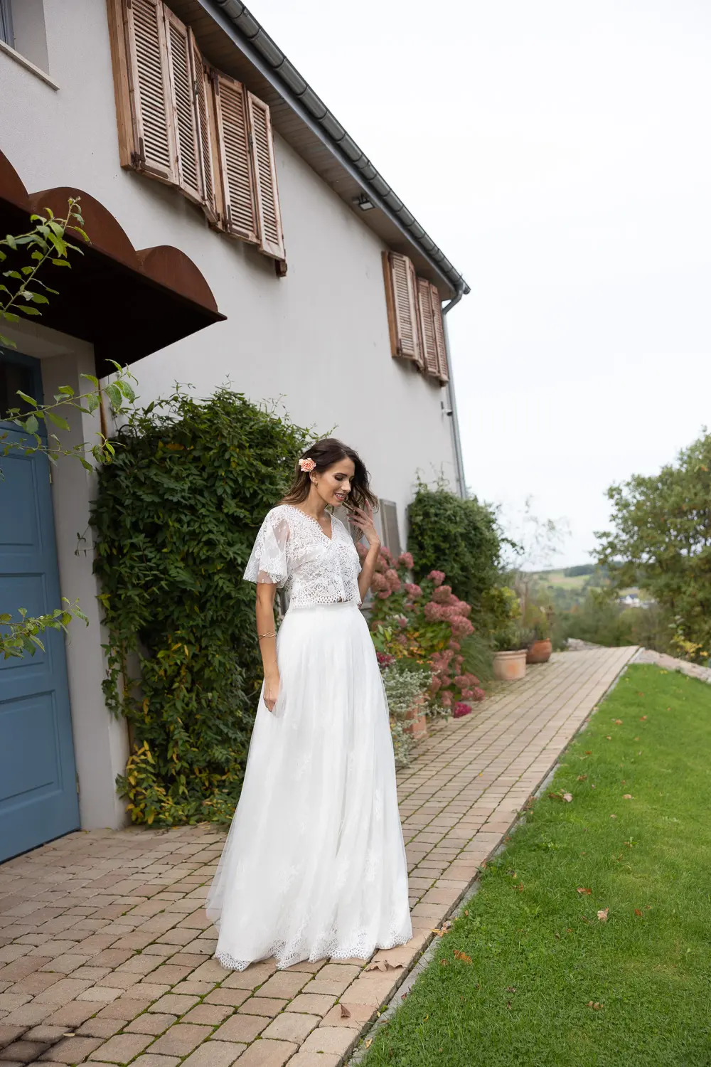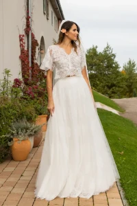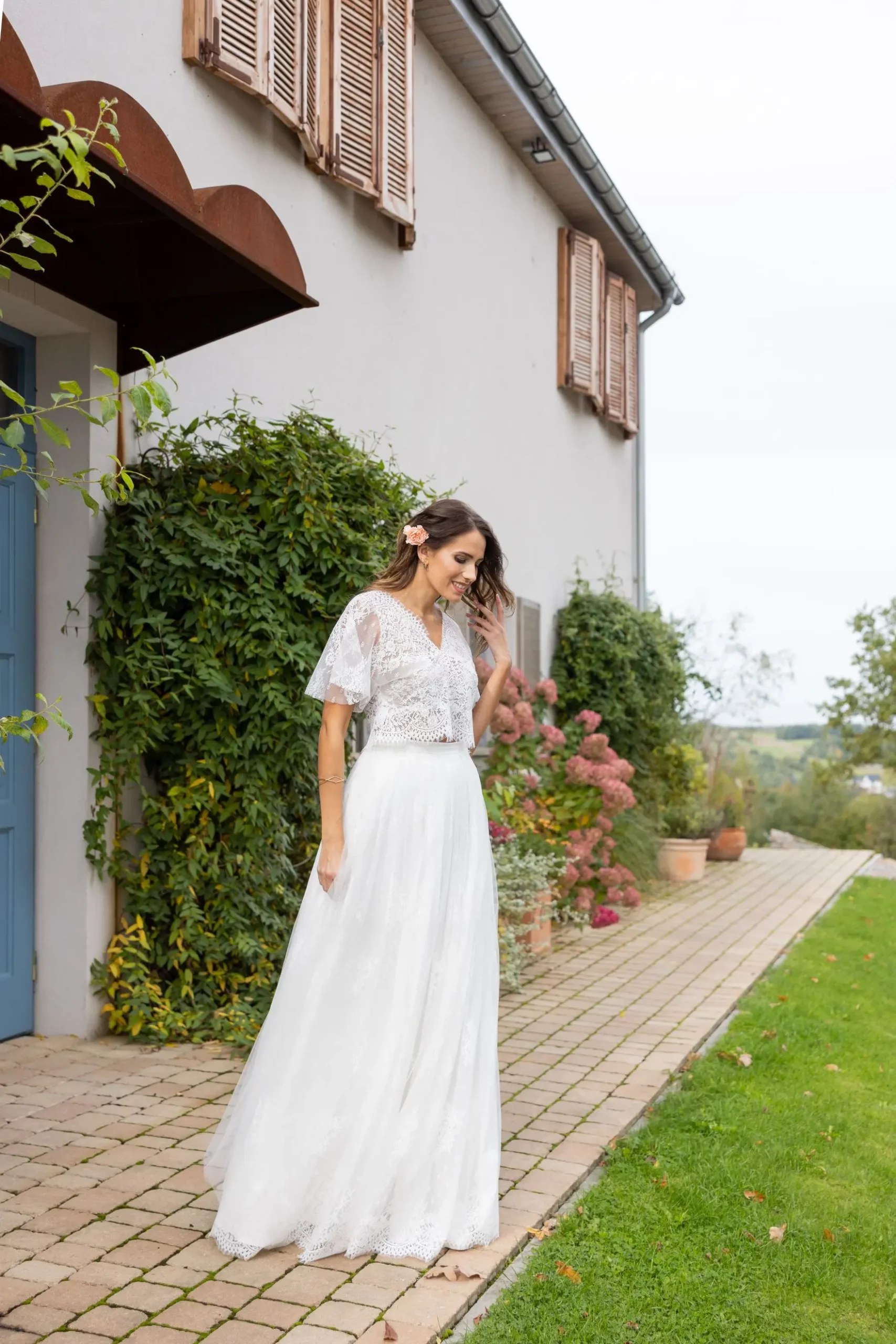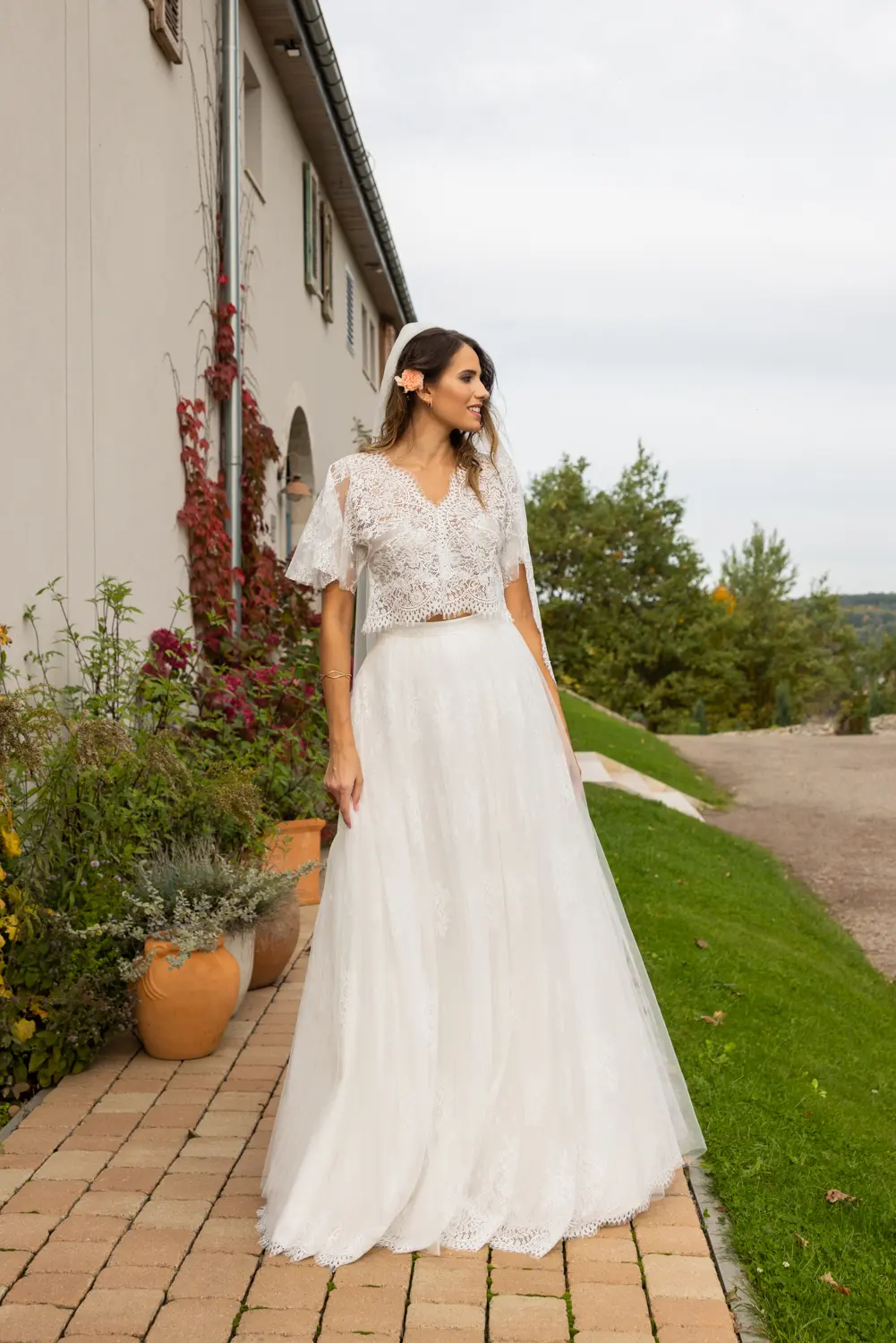 Skirt crafted from delicate French lace and tulle, exuding an ethereal, lightweight, and romantic charm.